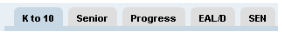 Features of the generate reports window The major features of the generate reports window are: Filters Selection of the appropriate school and reporting period. Manage Locking of Data Entry Managing the status of locks on the student report. Report Type Tabs Selection of the K to 10, Senior School, Progress, IEC, EAL/D and SEN report types. Note: Only active types for the school are displayed. File Options Options for the order and structure of the destination report document. Print Options Options for the printing of reports for the selected students. Student Selection Selection of students that will have reports printed. Generate Initiating the print process.