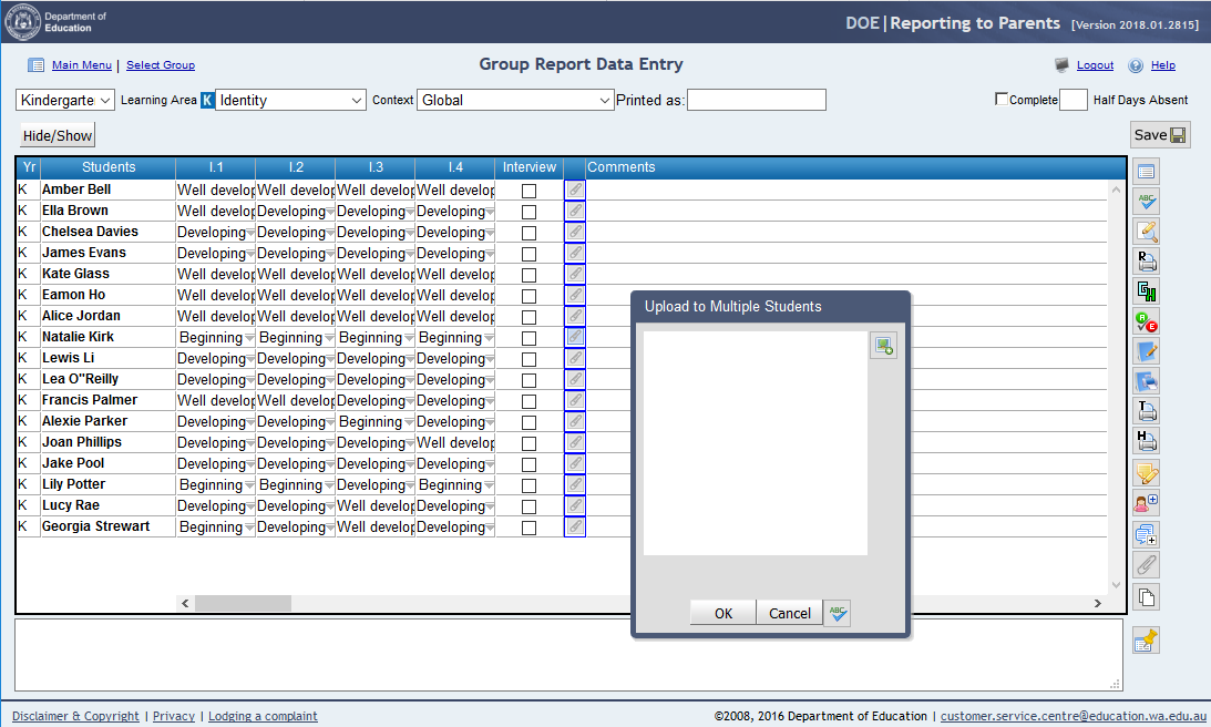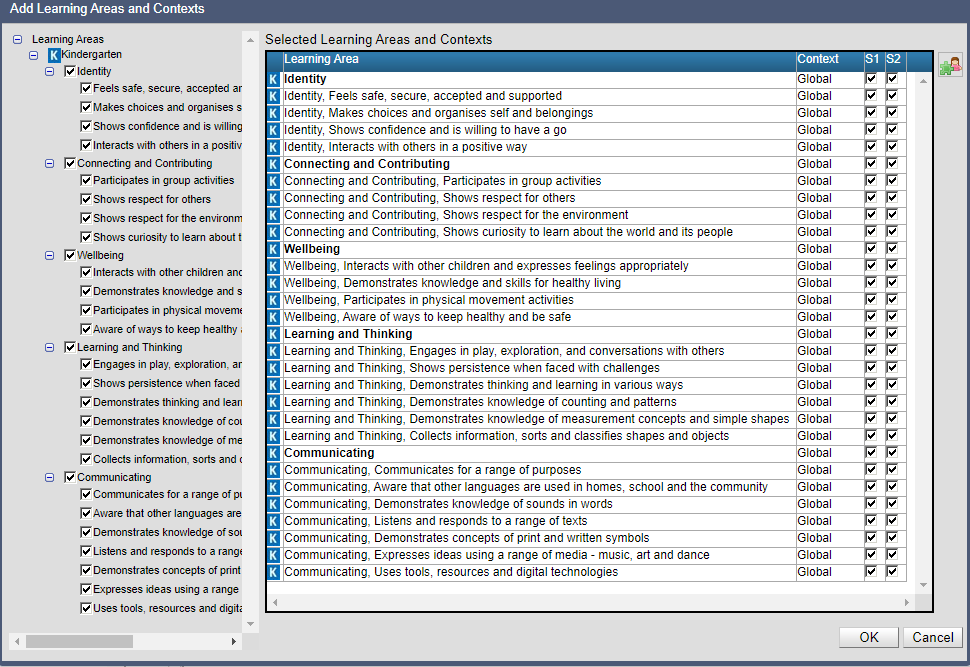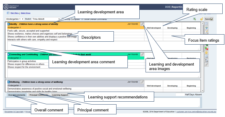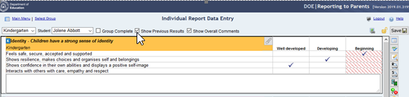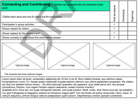 • Schools will be able to deselect learning development area descriptors that will not be reported on.