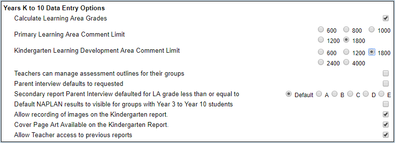 4. Scroll to the Years K to 10 Data Entry Options