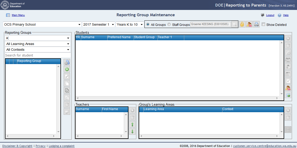 1. Select the Reporting Group Maintenance