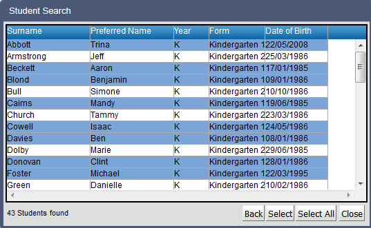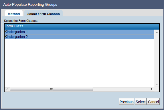 7. Select the Kindergarten form classes to be added