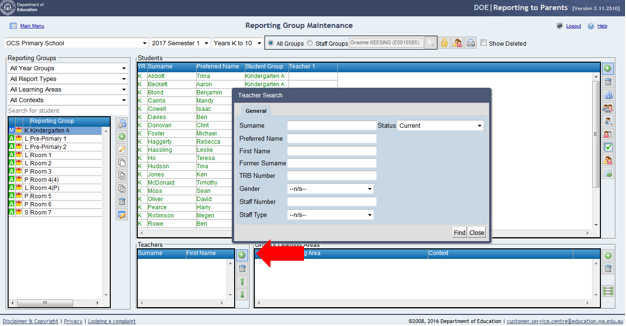 14. Enter the search parameters in the Teacher Search tool