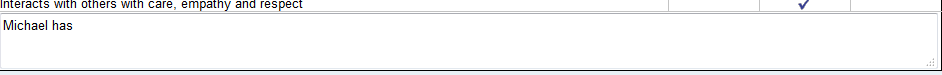• Click in the comment cell to type the student comment