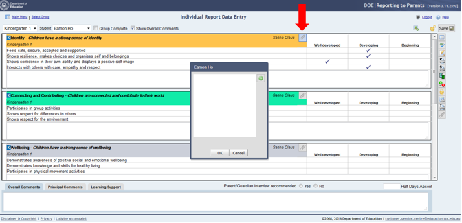 5. Select the Kindergarten Learning Area Comment Limit