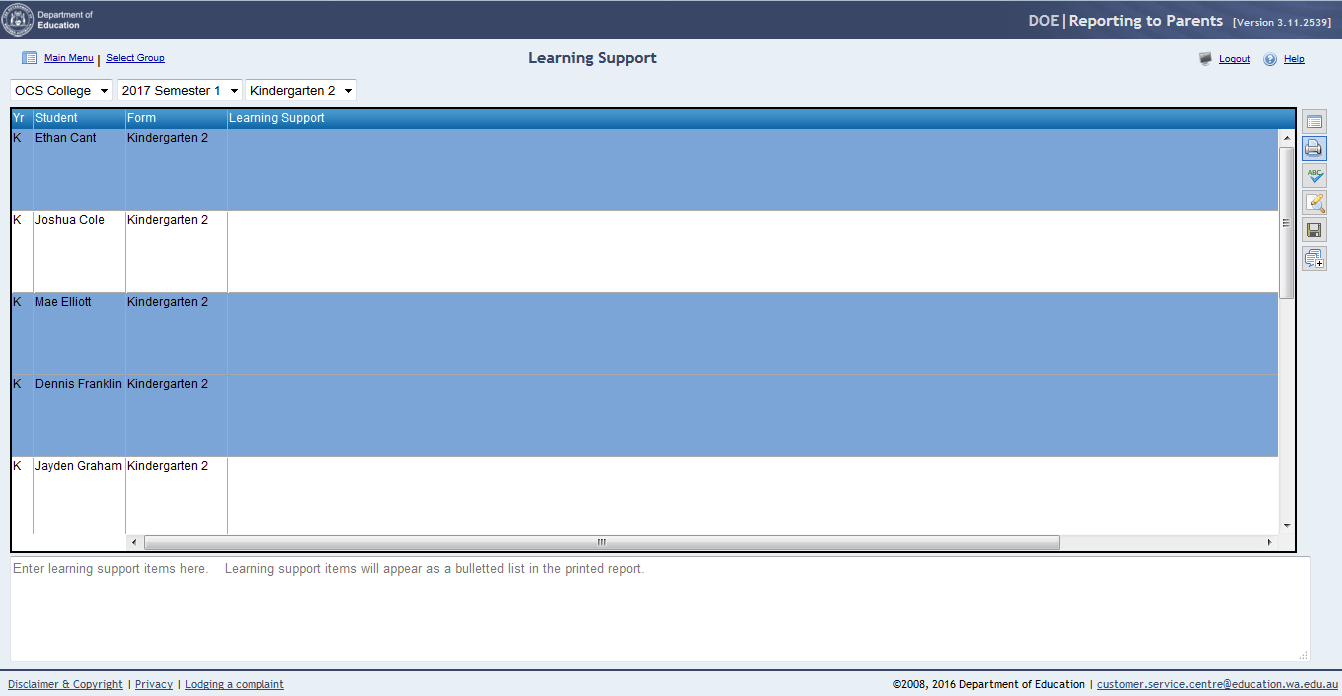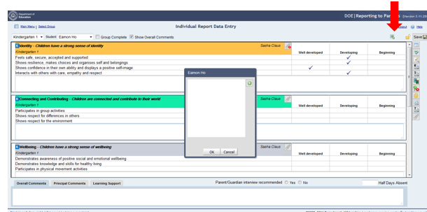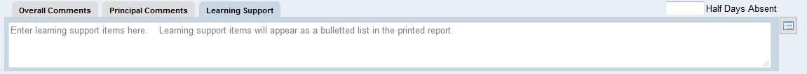 Click on the Spell Checkicon to perform a spell and grammar check on the learning support items for the selected students.