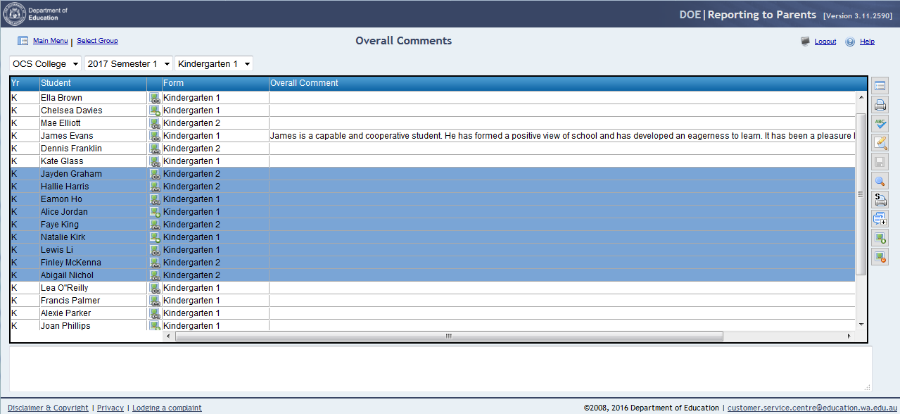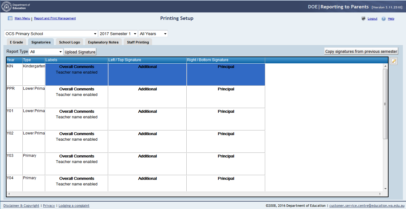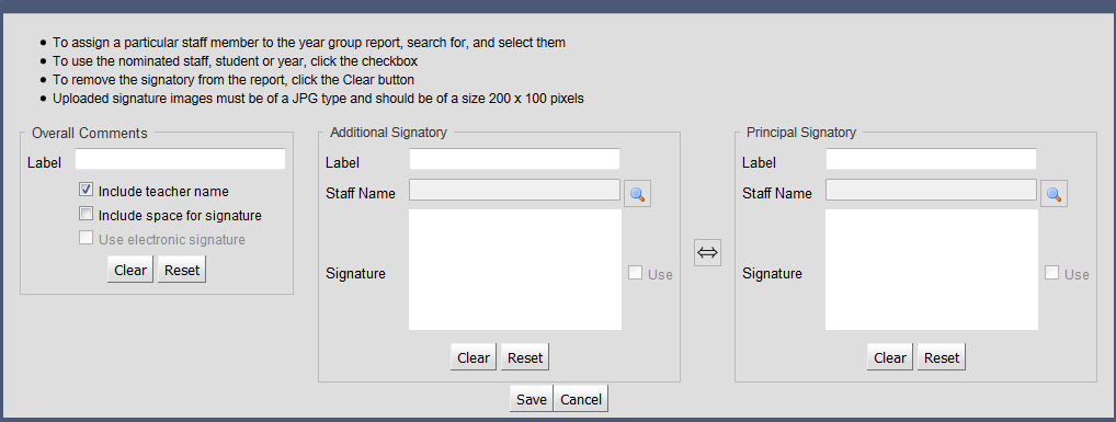 6. Enter the Overall Comments signatory details. These will relate to the classroom teacher.